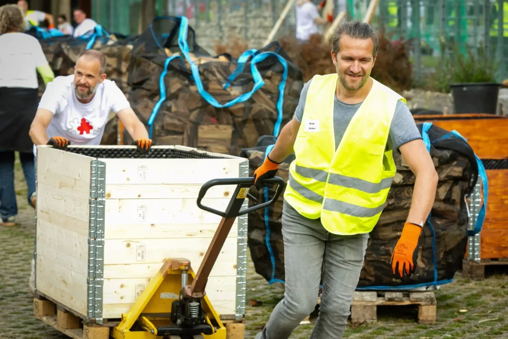 Es summte und brummte fleißig, wie in einem Bienenstock, als sich insgesamt über 150 Ehrenamtler aus Kölner Firmen auf dem Schulgelände der Freien Naturschulen Köln engagierten.